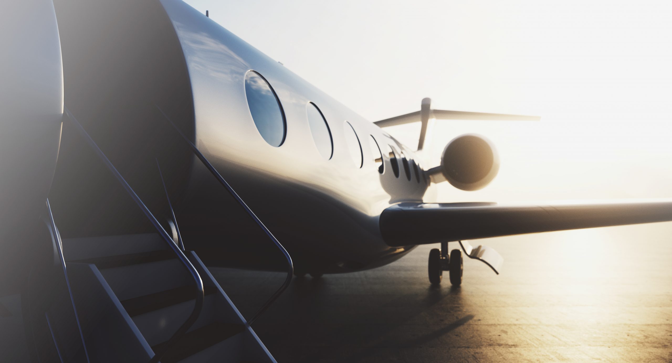 Business private jet airplane parked at terminal. Luxury tourism and business travel transportation concept. 3d rendering.